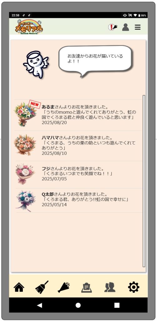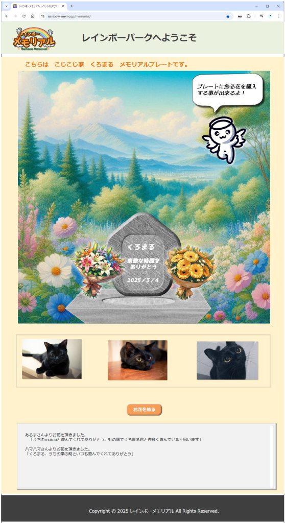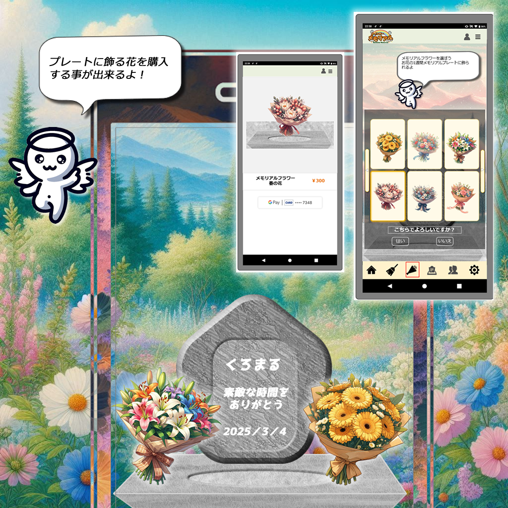 オプション機能としてお花を手向け(有料)メッセージを贈る機能もあります。